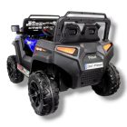 Este modelo incluye sistema de reproducción de música mediante MP3, USB y Bluetooth, además de sonidos en el volante y luces LED delanteras que aumentan el realismo del vehículo. Sus puertas funcionales facilitan el acceso, mientras que el control remoto permite a los padres manejar el auto cuando sea necesario.